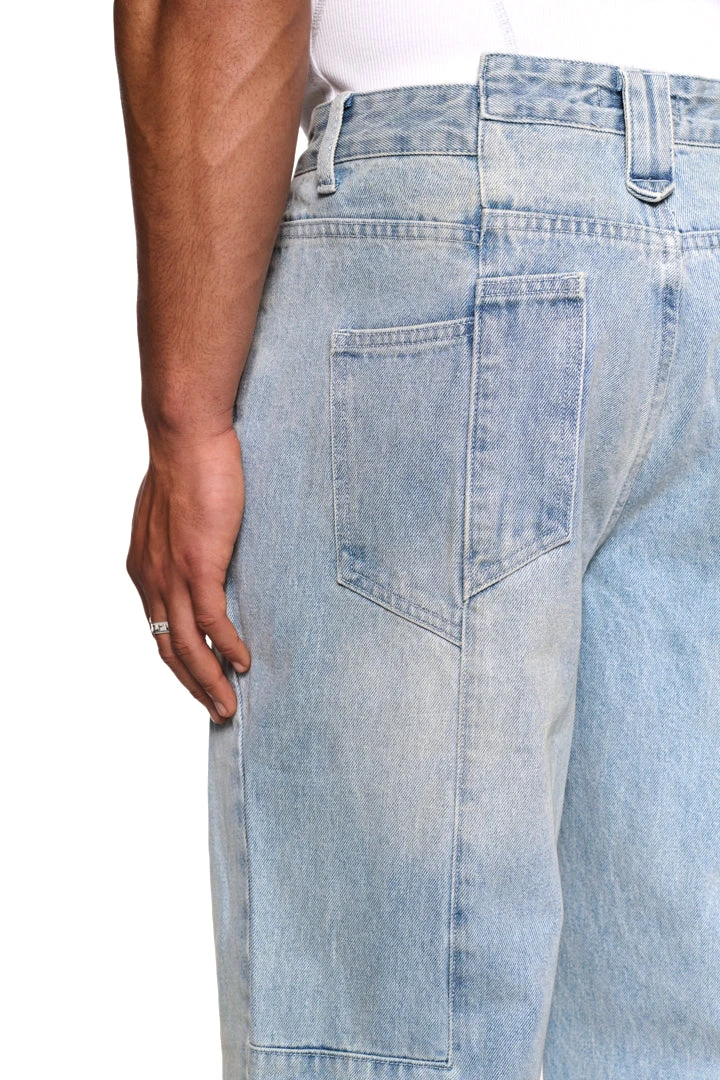 – Versetzter Hosenbund, Passe und Gesäßtasche an der linken Hinterhose