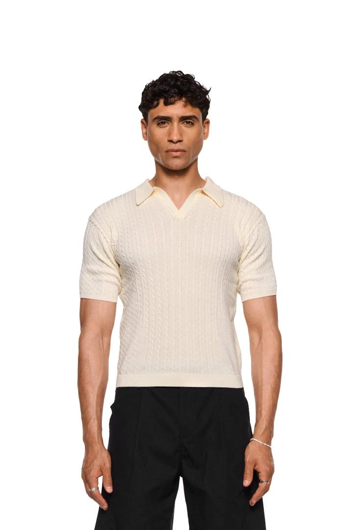 Fitted Knit Polo Creme
