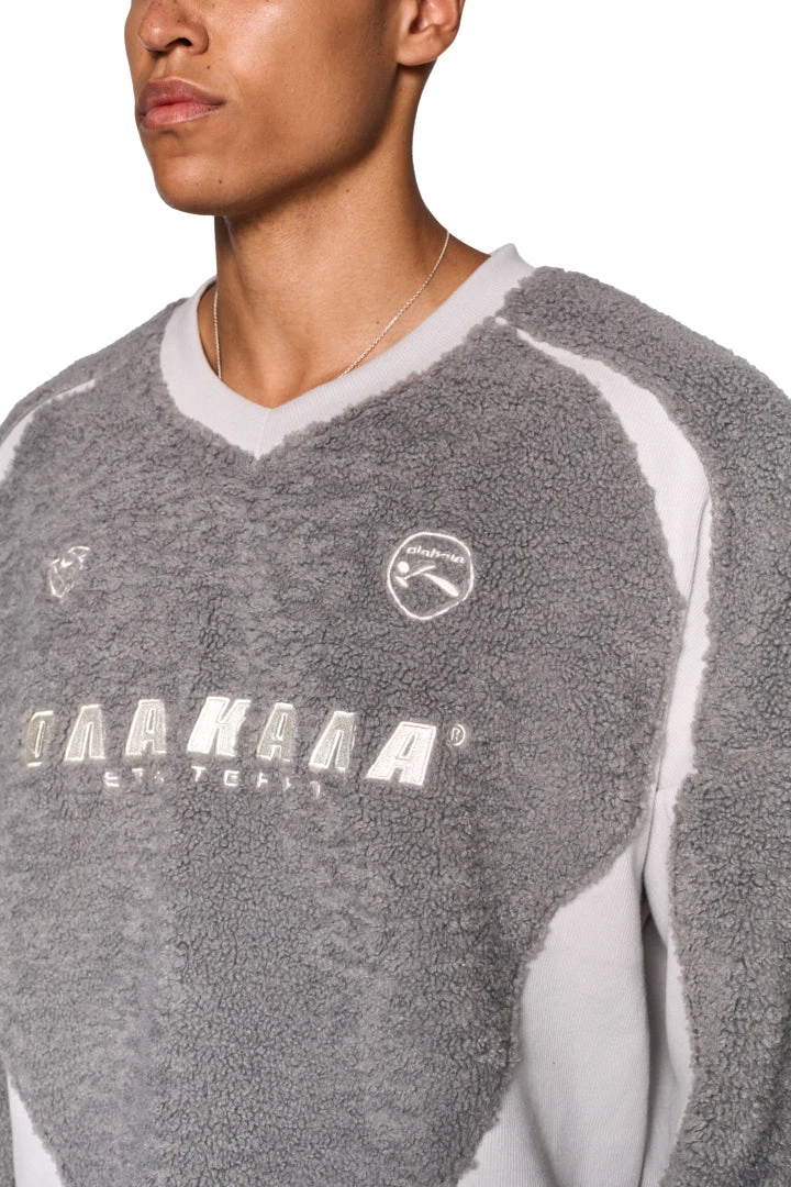Fleece V-Neck Sweater Gray